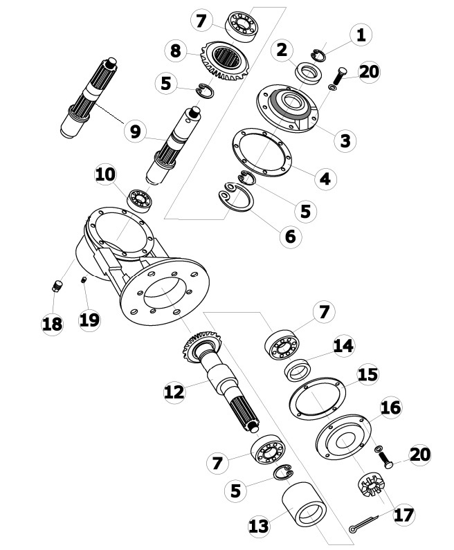 Gearbox 184005: Shear pin-style gearbox used on 5', 5.5', and 6' rotary cutters, and 7' finish mowers